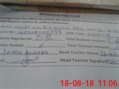 | Attendance Register | Head Teacher | MEA with School | Visit Proof |