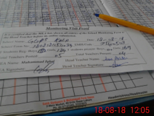 | Attendance Register | Head Teacher | MEA with School | Visit Proof |