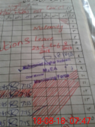 | CNIC | Full Name | Designation | R/C | Absence During Last Calender Month |