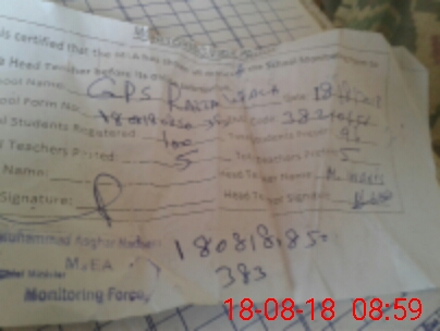 | Name: MU**** WA**** Designation: (School Headmaster's/Headmistress's) PST/PTC/JV Phone/Cell Number: 03**** |