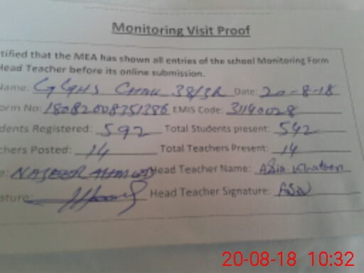 | Certified that this School was Inspected by the Undersigned MEA/DMO Today and the Information Stated Above is as Per Record. | |||||