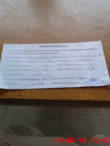 | EMIS Code: 31330833 | Name of School: GGPS MAJEED AMANAT ALI | |||