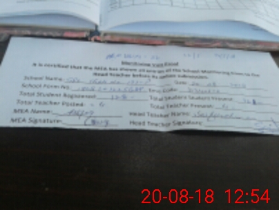 | Attendance Register | Head Teacher | MEA with School | Visit Proof |