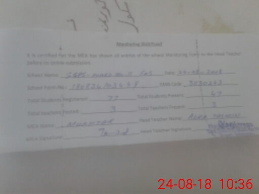 | Certified that this School was Inspected by the Undersigned MEA/DMO Today and the Information Stated Above is as Per Record. | |||||