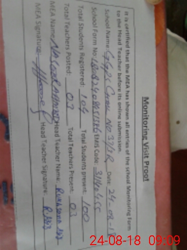 | Attendance Register | Head Teacher | MEA with School | Visit Proof |