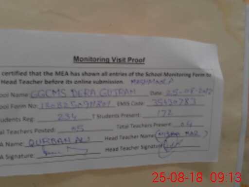| EMIS Code: 35430783 | Name of School: GGPS DERA GUJRAN MASMOOLA BUTTAR | |||