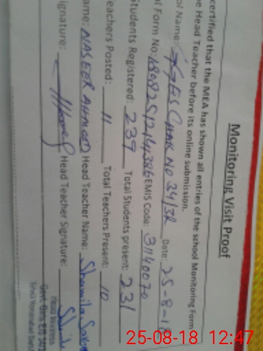 | Certified that this School was Inspected by the Undersigned MEA/DMO Today and the Information Stated Above is as Per Record. | |||||