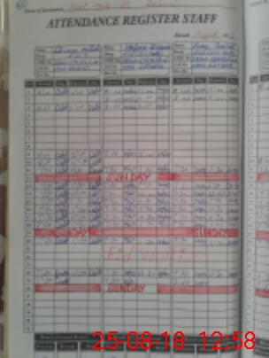 | CNIC | Full Name | Designation | R/C | Absence During Last Calender Month |