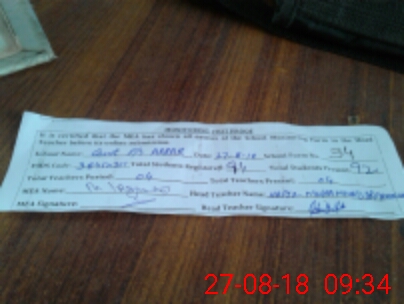 | Attendance Register | Head Teacher | MEA with School | Visit Proof |