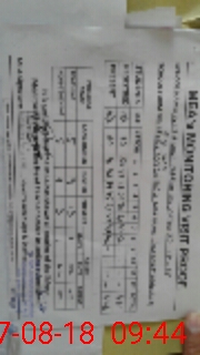 | Monitoring Date: 27-08-2018 | Start Time: 27-08-2018 08:33 AM | End Time: 27-08-2018 09:44 AM | Name of MEA: Sh**** Na**** | |