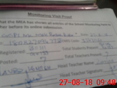 | Attendance Register | Head Teacher | MEA with School | Visit Proof |