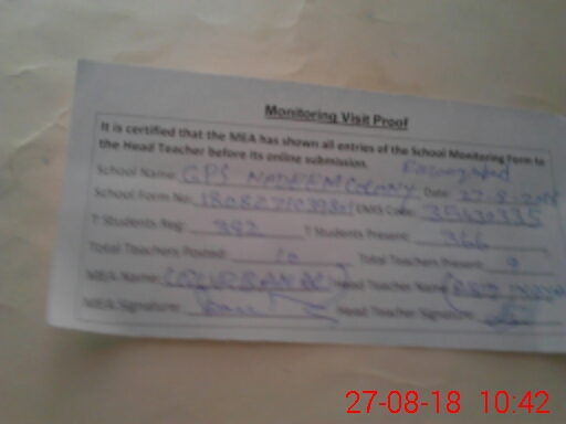 | Attendance Register | Head Teacher | MEA with School | Visit Proof |