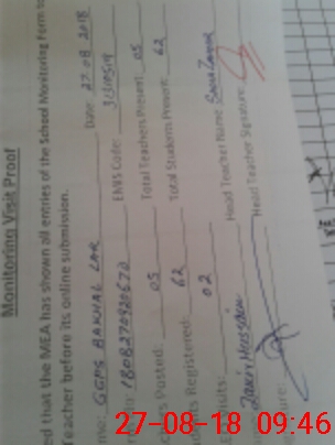 | Monitoring Date: 27-08-2018 | Start Time: 27-08-2018 09:17 AM | End Time: 27-08-2018 09:49 AM | Name of MEA: Za**** Hu**** | |