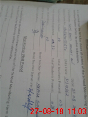 | Monitoring Date: 27-08-2018 | Start Time: 27-08-2018 10:32 AM | End Time: 27-08-2018 11:07 AM | Name of MEA: Za**** Hu**** | |
