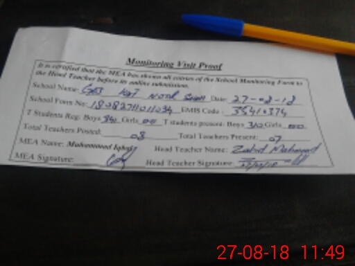 | Attendance Register | Head Teacher | MEA with School | Visit Proof |