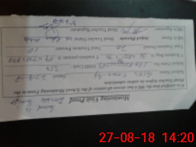 | Monitoring Date: 27-08-2018 | Start Time: 27-08-2018 01:22 PM | End Time: 27-08-2018 02:30 PM | Name of MEA: Am**** Hu**** | |