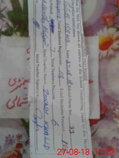 | Name: As**** Ir**** Designation: (School Headmaster's/Headmistress's) EST SCI Phone/Cell Number: 03**** |
