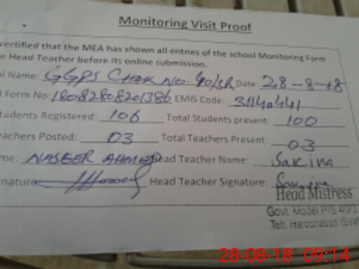 | Certified that this School was Inspected by the Undersigned MEA/DMO Today and the Information Stated Above is as Per Record. | |||||