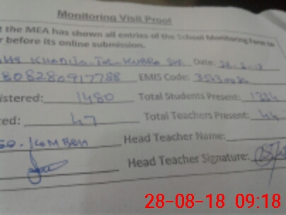 | Attendance Register | Head Teacher | MEA with School | Visit Proof |
