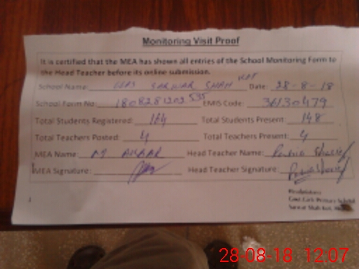 | EMIS Code: 36130479 | Name of School: GGPS SARWAR SHAH KOT | |||