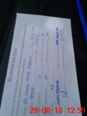 | Monitoring Date: 28-08-2018 | Start Time: 28-08-2018 12:43 PM | End Time: 28-08-2018 01:01 PM | Name of MEA: Za**** Hu**** | |