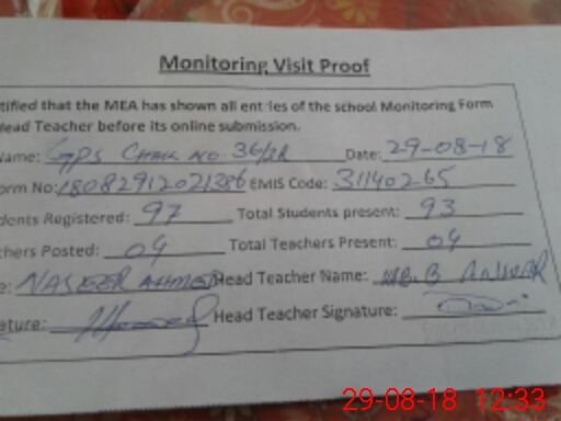 | EMIS Code: 31140265 | Name of School: GPS CHAK NO.36/3-R | |||