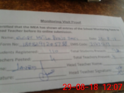 | Attendance Register | Head Teacher | MEA with School | Visit Proof |