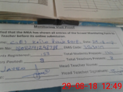 | Attendance Register | Head Teacher | MEA with School | Visit Proof |