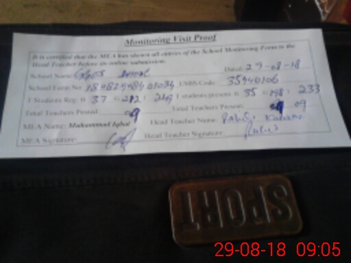 | Attendance Register | Head Teacher | MEA with School | Visit Proof |