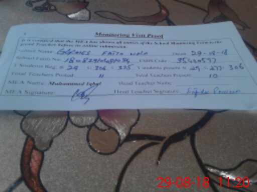 | Name: FA**** MU**** Designation: (School Headmaster's/Headmistress's) EST Phone/Cell Number: 03**** |