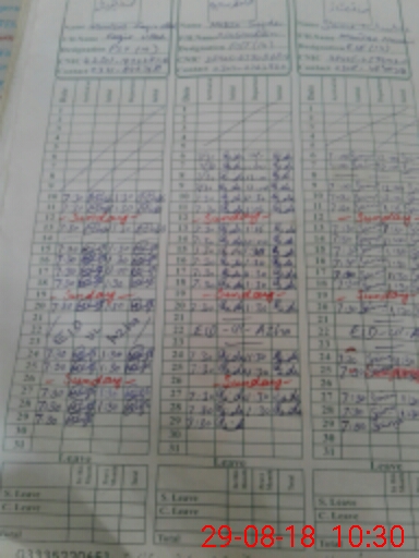 | CNIC | Full Name | Designation | R/C | Absence During Last Calender Month |