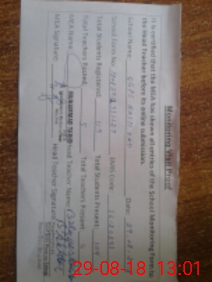 | Attendance Register | Head Teacher | MEA with School | Visit Proof |