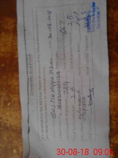 | Certified that this School was Inspected by the Undersigned MEA/DMO Today and the Information Stated Above is as Per Record. | |||||