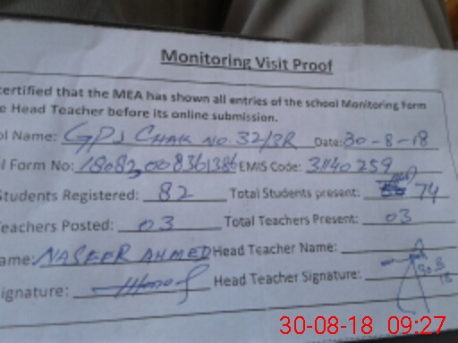 | EMIS Code: 31140259 | Name of School: GPS CHAK NO.32/3-R | |||