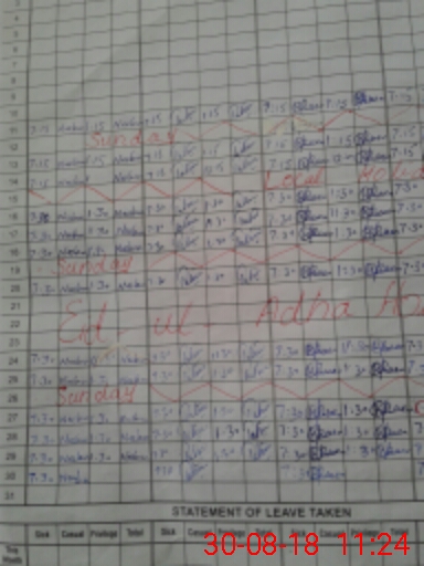 | CNIC | Full Name | Designation | R/C | Absence During Last Calender Month |