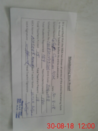 | Attendance Register | Head Teacher | MEA with School | Visit Proof |