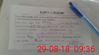 | Monitoring Date: 29-08-2018 | Start Time: 29-08-2018 09:04 AM | End Time: 29-08-2018 09:37 AM | Name of MEA: Za**** Iq**** BN**** | |