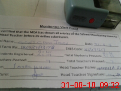 | Attendance Register | Head Teacher | MEA with School | Visit Proof |