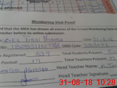 | Attendance Register | Head Teacher | MEA with School | Visit Proof |