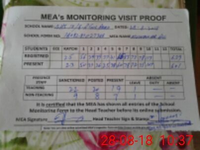 | Attendance Register | Head Teacher | MEA with School | Visit Proof |