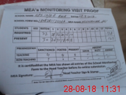 | Attendance Register | Head Teacher | MEA with School | Visit Proof |