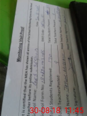 | Certified that this School was Inspected by the Undersigned MEA/DMO Today and the Information Stated Above is as Per Record. | |||||
