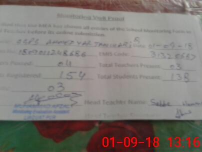| Attendance Register | Head Teacher | MEA with School | Visit Proof |