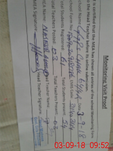 | EMIS Code: 31140344 | Name of School: GGPS CHAK NO 64/4-R | |||