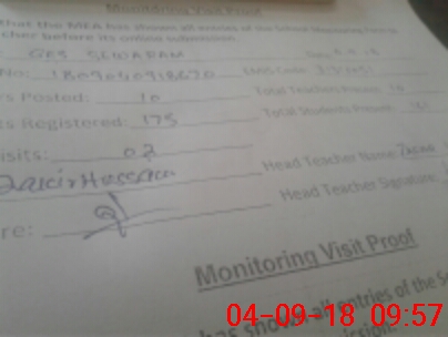| Attendance Register | Head Teacher | MEA with School | Visit Proof |