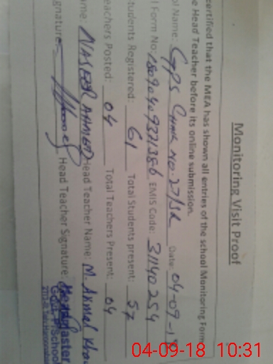 | EMIS Code: 31140254 | Name of School: GPS CHAK NO.27/3-R | |||