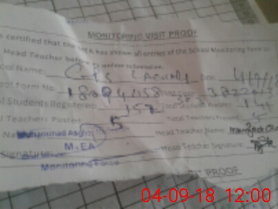 | Attendance Register | Head Teacher | MEA with School | Visit Proof |