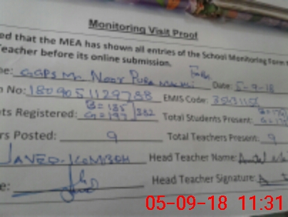 | EMIS Code: 35431156 | Name of School: GGPS MC NOOR PURA MACHLI FARM | |||