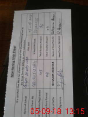 | Attendance Register | Head Teacher | MEA with School | Visit Proof |
