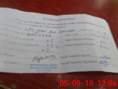 | Attendance Register | Head Teacher | MEA with School | Visit Proof |
